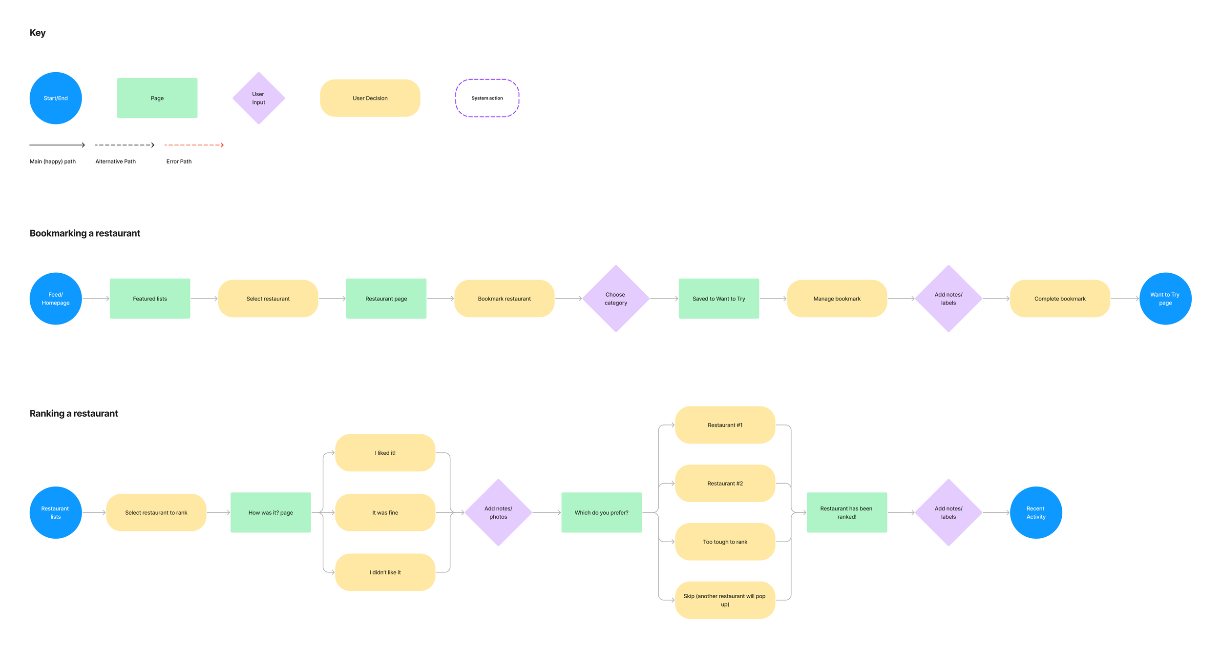 Once I established the structural organization with the site map, simplifying the process of mapping out the user interactions through user flows.