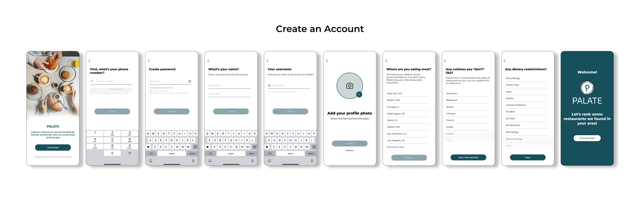Working on this project gave me a lot of insight into creating a MVP for an end-to-end app while having time constraints. With the time constraint, I prioritized the essential tasks that a social-driven restaurant ranking/review app such as Palate required, but I had to set aside some features that would have made Palate stand out. Here’s a few things I identified for future opportunities to improve upon:
