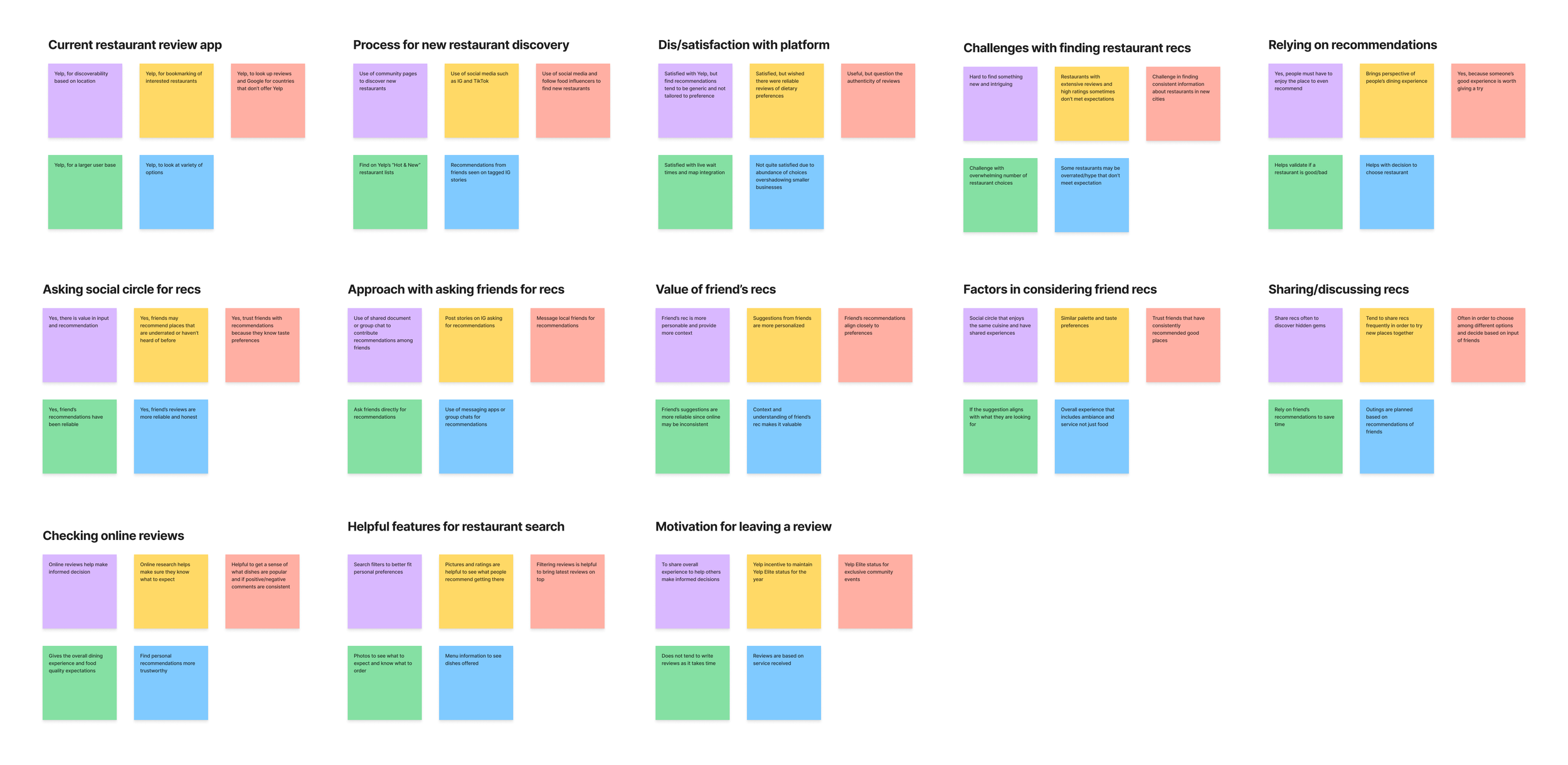 To help break down insights from the interviews, I created an Affinity Map to identify themes and patterns.